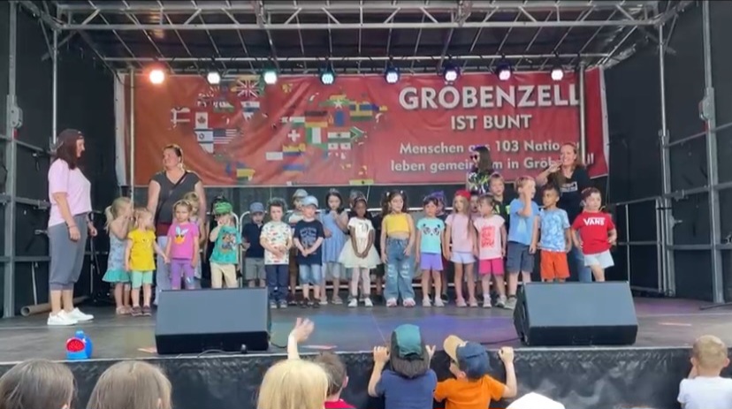 Am Samstag, 17. 6. 2023 war es endlich soweit: unser Auftritt beim Kultur- und Straßenfest “Gröbenzell ist bunt” auf dem Rathausplatz Gröbenzell war ein voller Erfolg! Bei bestem Sommerwetter fanden sich rund 25 unserer Schatzkistenkinder zu diesem besonderen Treffen “außer der Reihe” ein, um gemeinsam auf der Bühne eine coole Breakdance-Performance zu unserem neuen Schatzkisten-Rap hinzulegen. Diesen hat Judith extra für die Schatzkiste geschrieben und aufgenommen. Das Publikum, allen voran die anwesenden Familien, war begeistert und forderte sogar noch eine Zugabe. Unter folgendem link können Sie den entsprechenden Zeitungsartikel aus dem Münchner Merkur nachlesen: https://www.merkur.de/lokales/fuerstenfeldbruck/groebenzell-ort28765/eine-reise-um-die-welt-mitten-in-groebenzell-92350054.html