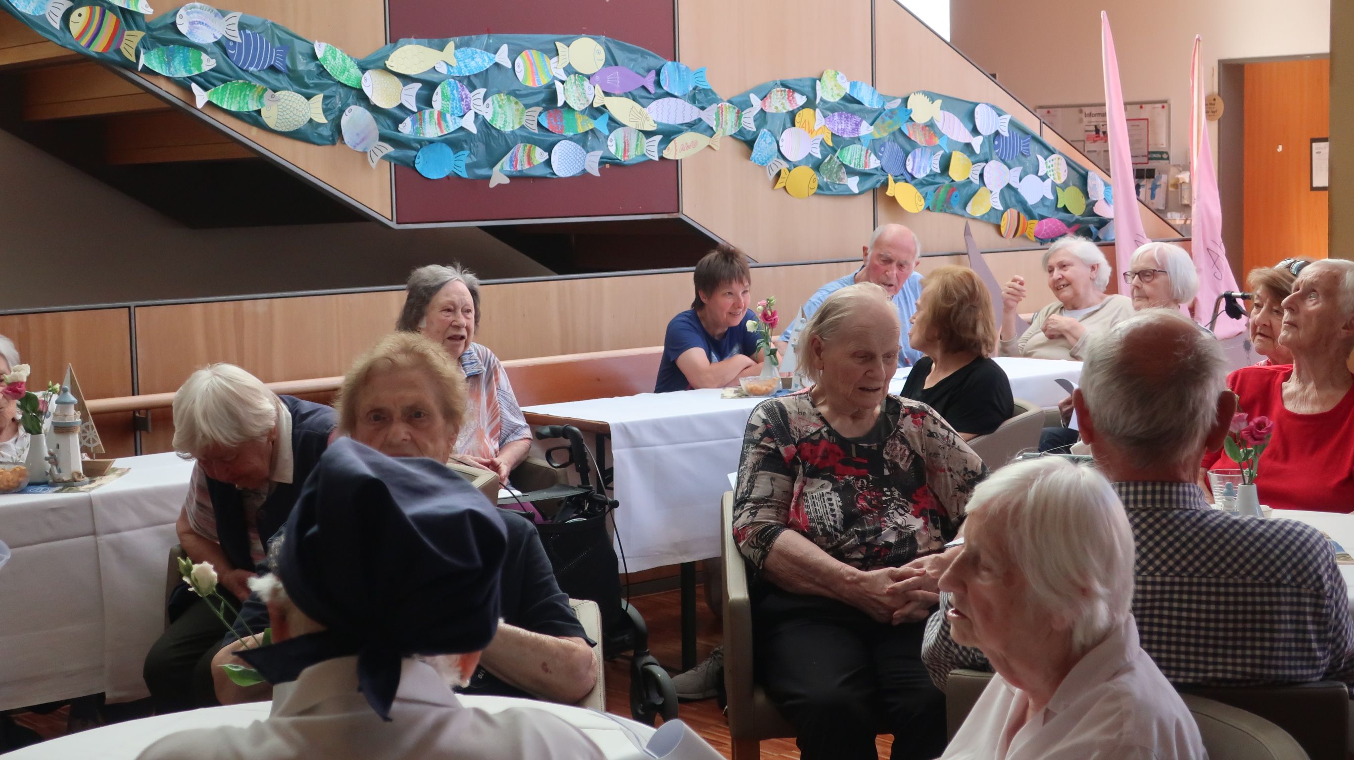 Die Begeisterung beim Seemannsfest im letzten Jahr war überwältigend. Deshalb haben wir entschieden dieses Ereignis in diesem Jahr erneut aufleben zu lassen. Die interessierten Bewohner*innen aus allen Wohnbereichen sowie einige Angehörige hatten sich in der Cafeteria eingefunden, um miteinander viel Spaß zu haben.