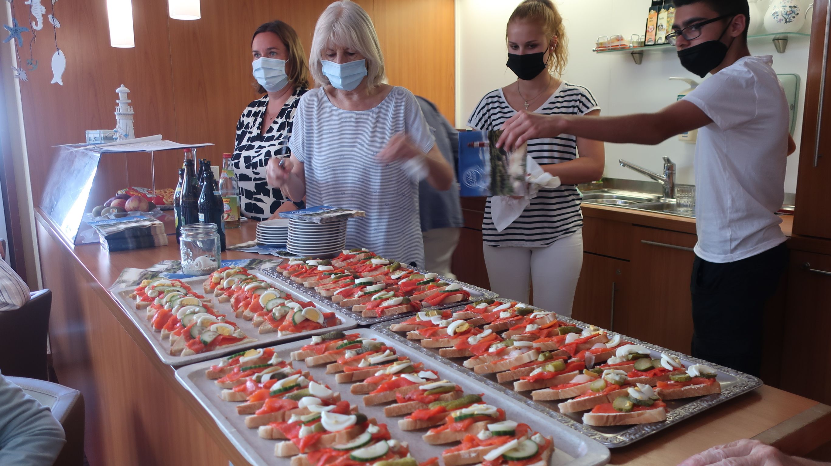Auf einem Seemannsfest darf Fisch auf keinen Fall fehlen. Unsere engagierte Hauswirtschaftsleitung Frau Dierking zauberte mit ihren liebevoll dekorierten Matjesschnittchen die besten Voraussetzungen für das leibliche Wohl.