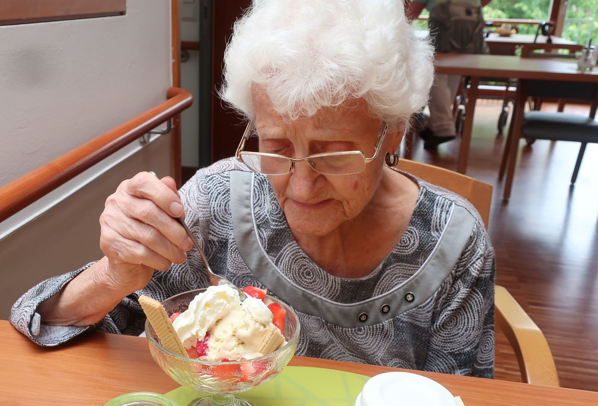 Die Senior*innen konnten sich letzte Woche über leckere Erdbeeren zum Nachtisch erfreuen.