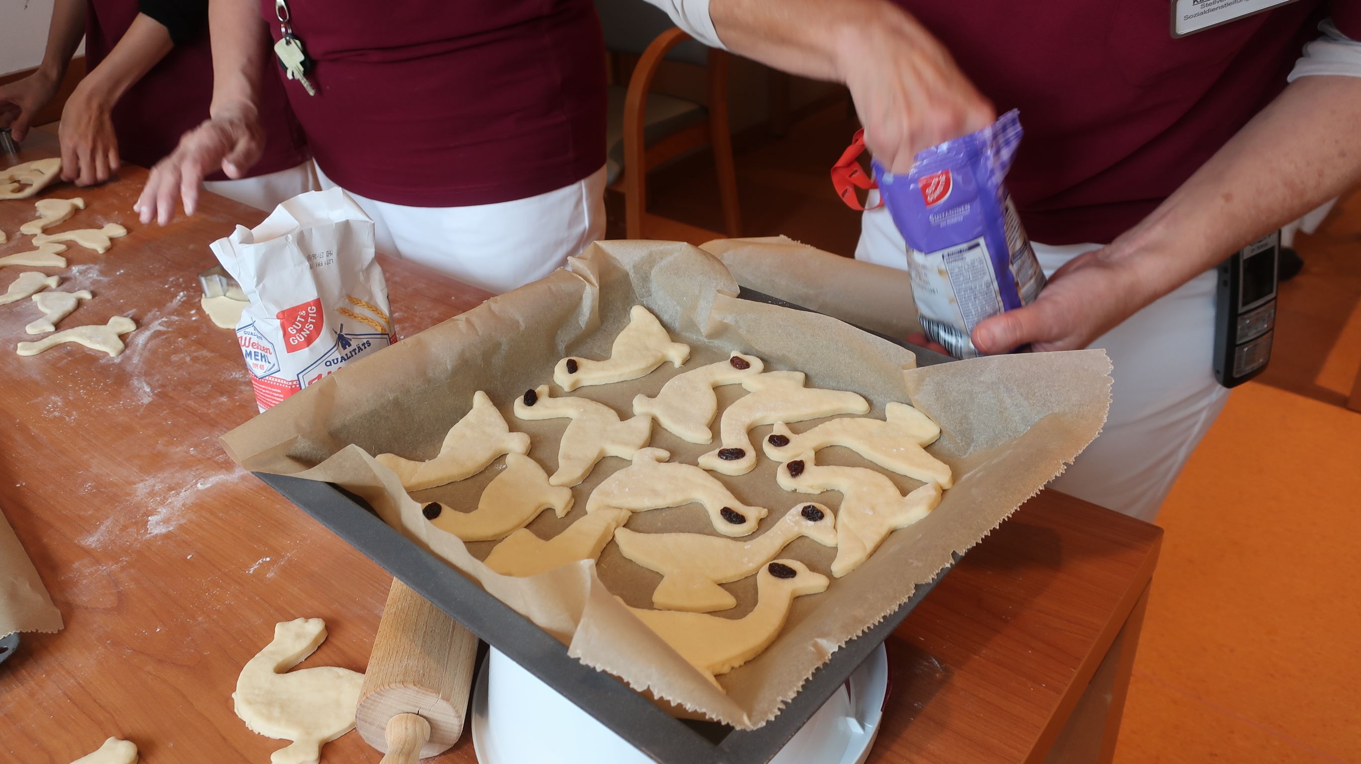 Dank Aidai, Frau Gordienko, Frau Wolff und den eifrigen Bewohner*innen konnten wir dieses Jahr für jeden Senior*in eine Martinsgans aus Hefe bzw. Quarkteig hergestellt - man musste nicht einmal teilen.